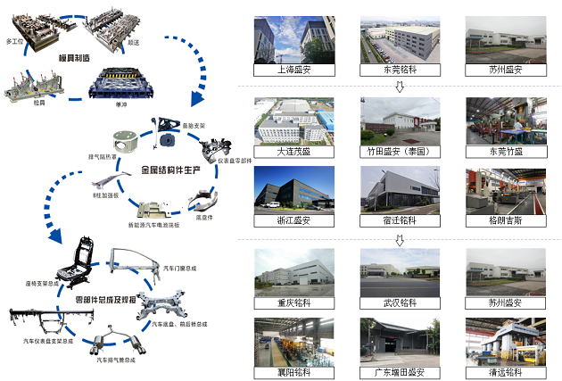 集團(tuán)公司初創(chuàng)于2003年,以經(jīng)營(yíng)消費(fèi)電子相關(guān)的模具及零部件起步,于2008年前后進(jìn)入汽車零部件領(lǐng)域并獲得客戶一致認(rèn)可,相關(guān)業(yè)務(wù)逐步彰顯規(guī)模,2011年起集團(tuán)公司汽車零部件業(yè)務(wù)進(jìn)入快速增長(zhǎng)期。在汽車領(lǐng)域,集團(tuán)公司獲得馬瑞利(MagnetiMarelli)、海斯坦普(GESTAMP)、廣島技術(shù)、佛吉亞(Faurecia)、安道拓、凌云工業(yè)等全球知名的汽車零部件一級(jí)供應(yīng)商的認(rèn)可,并服務(wù)于寶馬、奔馳、奧迪、日產(chǎn)、本田、豐田、通用、小鵬汽車、賽力斯等品牌汽車,為其提供精密汽車沖壓模具及汽車零部件。業(yè)務(wù)范圍分布圍繞:美國(guó)、西班牙、法國(guó)、德國(guó)、捷克、英國(guó)、墨西哥、日本等國(guó)家。